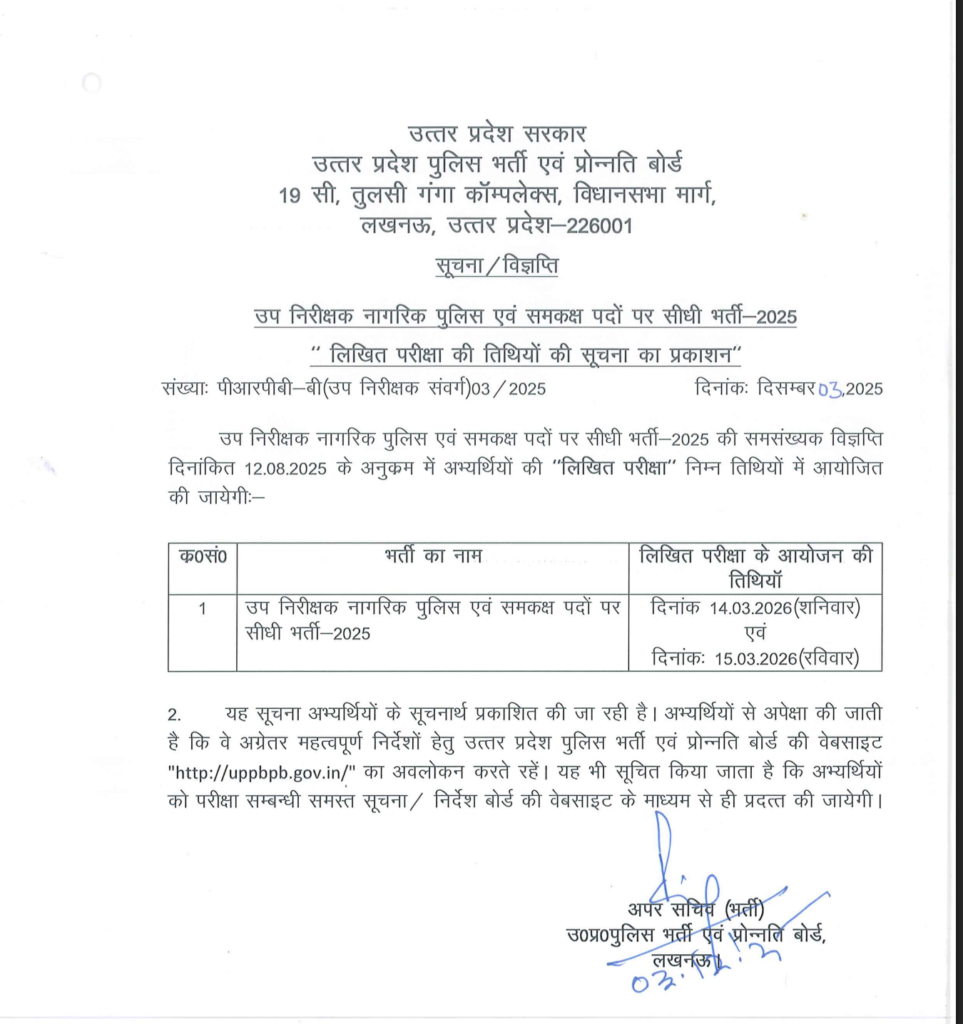 Uttar Pradesh Police Recruitment & Promotion Board (UPPRPB) has relased Sub Inspector SI Daroga Recruitment Notification. Those candidates who are Enrolled in this UP Police SI Exam 2026 can Check the Exam Date and Download OMR Sheet Filling Instruction Read the notification for recruitment eligibility, post information, selection procedure, Practice Test, pay scale and all other information.